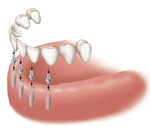 Placement of custom-made individual replacement teeth or, most often, an implant-supported fixed bridge or implant-supported overdenture